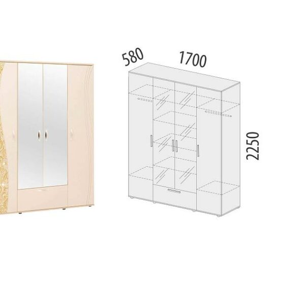 Стеллаж «Альфа 62 532» является частью модульного набора мебели «Альфа». Модуль разделен полками на пять секций. Стеллаж укомплектован дверцами. Устойчивость конструкции придают межсекционные стяжки. Регулируемые по высоте ножки компенсируют возможные неровности пола.