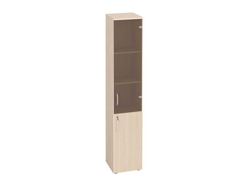 Стеллаж «Альфа 63 538» является частью модульного набора мебели «Альфа». Укомплектован стеклянной и глухой дверцами. Модуль разделен полками на пять секций. Устойчивость конструкции придают межсекционные стяжки. Регулируемые по высоте ножки компенсируют возможные неровности пола.