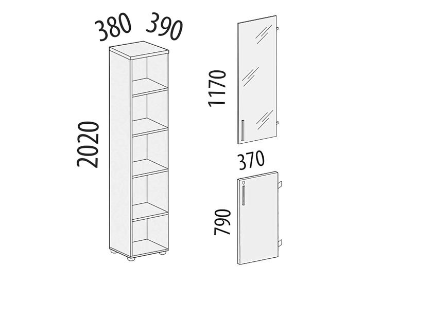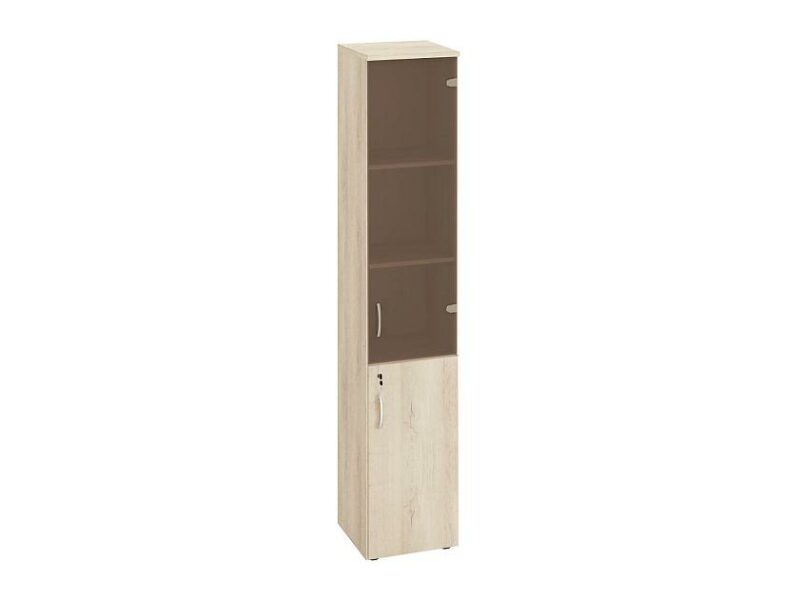 Стеллаж «Альфа 64 538» является частью модульного набора мебели «Альфа». Укомплектован стеклянной и глухой дверцами.