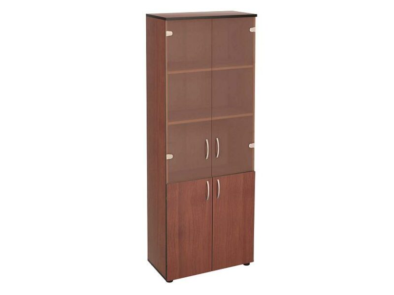 Стеллаж «Рубин 41 533» является частью коллекции мебели для офиса «Рубин». Укомплектован стеклянными и глухими дверцами с металлическими ручками.