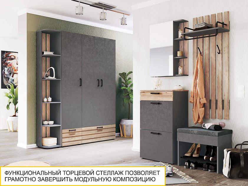 Торцевой стеллаж позволяет красиво завершить модульную композицию и добавляет изящности прихожей.