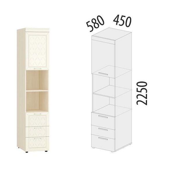 Торцевой стеллаж «Тиффани 93.17.1» является частью модульной программы «Тиффани». Коллекция «Тиффани» — символ классического стиля и незабываемого шарма. Нежные светлые фасады и изысканность декора — отличительная черта коллекции. Ажурные декоративные элементы и кристаллы придают уникальность коллекции.