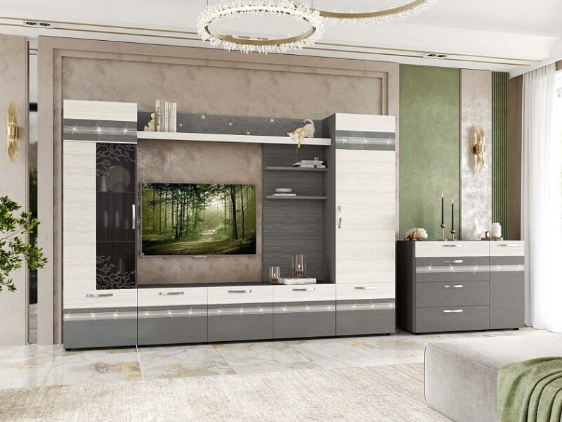 Стенка для гостиной «Графит 604 404» является частью модульной программы «Графит». Коллекция «Графит» – пример совмещения модных тенденций и универсальности.