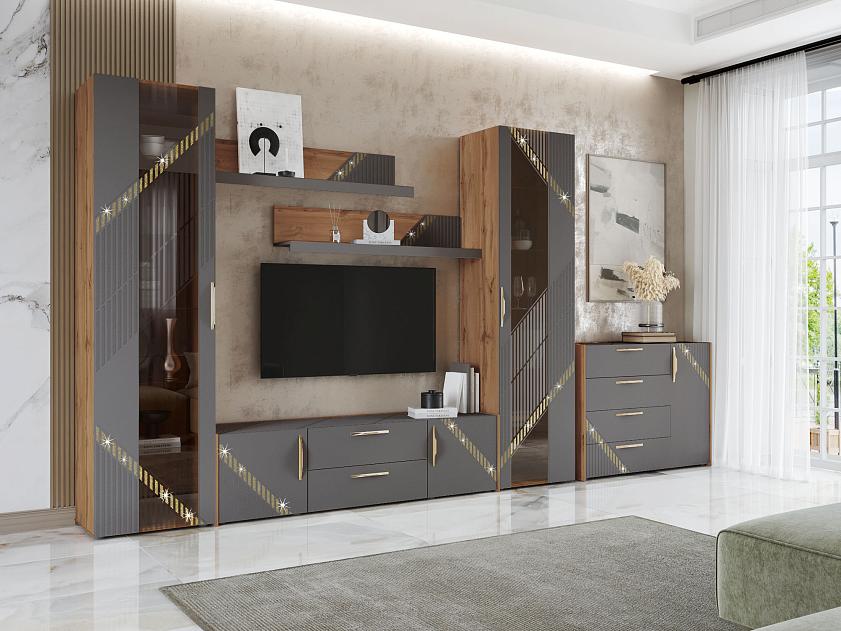 Стенка для гостиной «Монако 605 407» — это образец элегантного стиля и утонченного вкуса. Сочетание матовой графитовой поверхности