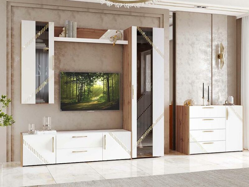 Стенка для гостиной «Монако 606 404» — это образец элегантного стиля и утонченного вкуса. Сочетание матовой белоснежной поверхности