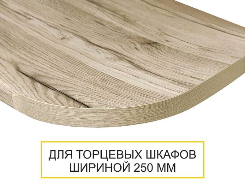 Радиусная столешница предназначена для гарнитуров с торцевыми модулями кухни.