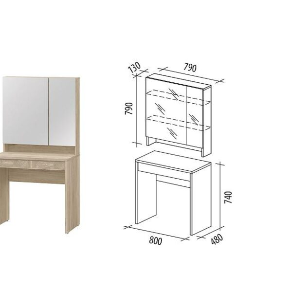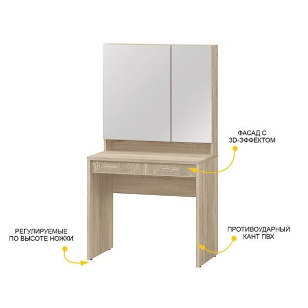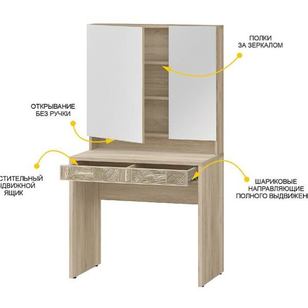 В комплекте с надстройкой с зеркалом «Кашемир 900.16», модуль можно использовать как функциональный туалетный столик.