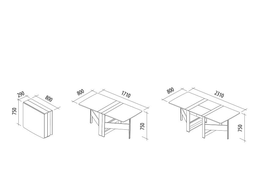 — в разложенном виде размер столешницы составляет 171х80 см (без использования внутренней части) и 231х80 см (с внутренней частью).