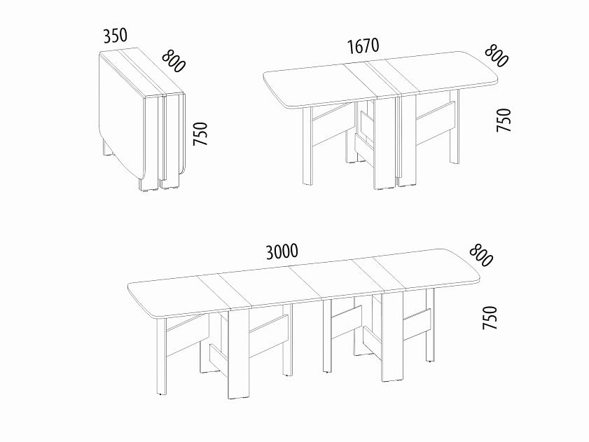 — в разложенном виде размер столешницы составляет 167х80 см (без использования внутренней части) и 300х80 см (с внутренней частью).