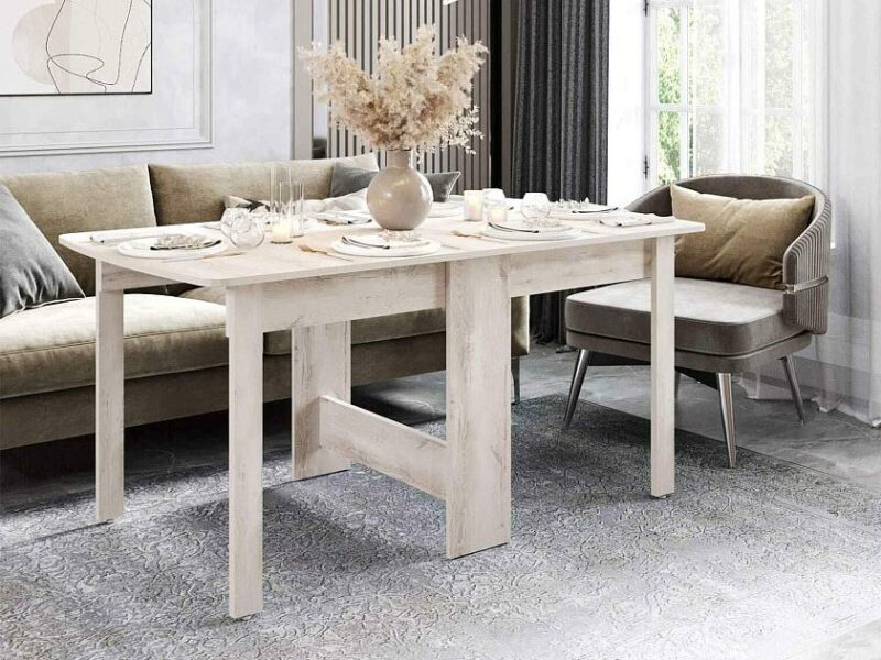 «Колибри 14 Дуб Канадский» – это стильный и функциональный стол-книжка, выполненный в бежево-серых тонах с имитацией натуральной древесной текстуры.