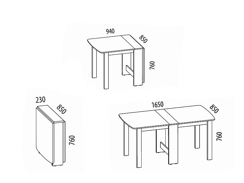 В сложенном виде размер стола – 23х85 см, в разложенном — 94х85 см (с одной столешницей), 165х85 см (с двумя столешницами).
