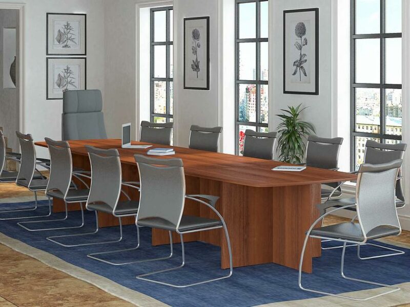 Стол переговоров в комплекте является частью модульного набора мебели для офиса «Лидер».