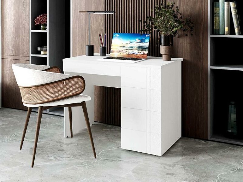Стол компьютерный «Николь 901.26» является частью модульной программы «Николь». Белоснежные матовые фасады — визитная карточка этой коллекции. Конструктив и дизайн модели продуман до мелочей. Стол можно использовать не только в сочетании с другими модулями спальни, но и как отдельный предмет мебели.
