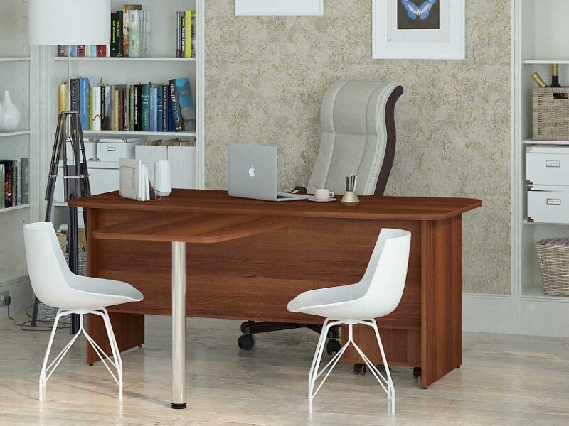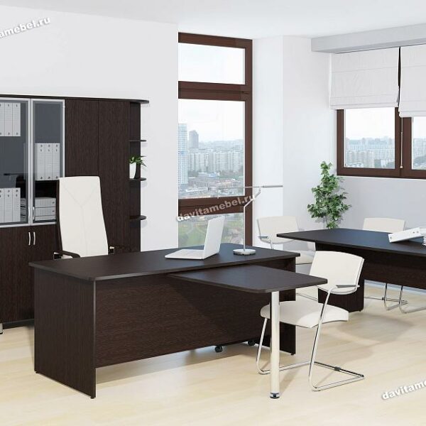 Стол руководителя «Лидер 82 261» укомплектован тумбой и приставкой.