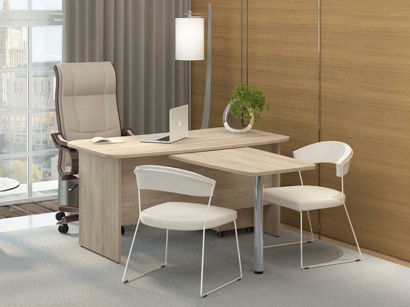 Стол руководителя «Лидер 84 262» укомплектован тумбой и приставкой.