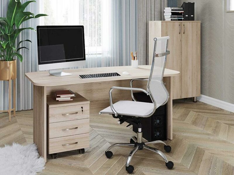 Стол руководителя «Лидер 84 264» укомплектован тумбой.