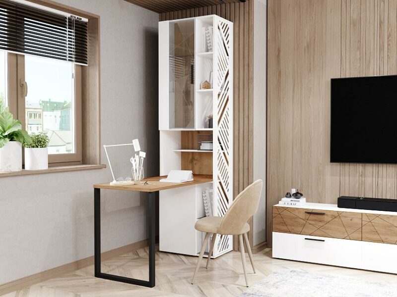 Стол-стеллаж можно использовать как отдельный предмет мебели, так и в сочетании с другими модулями коллекции.