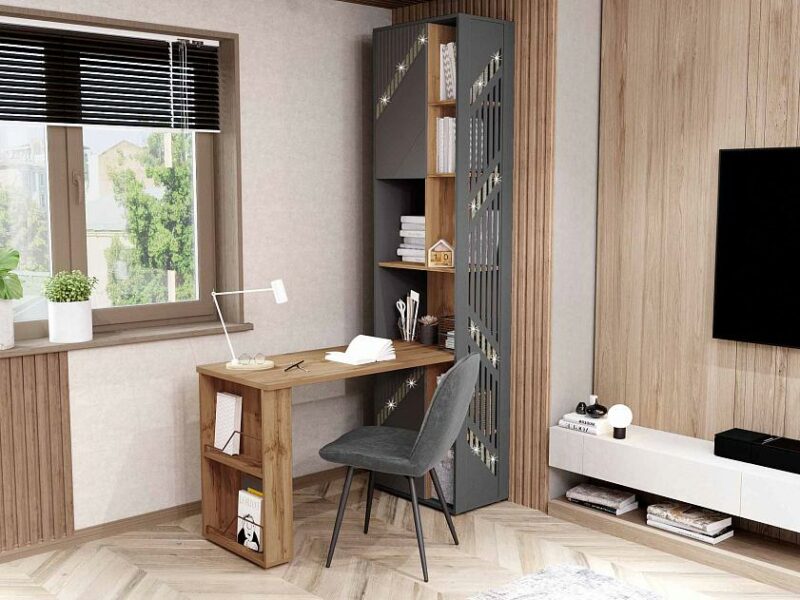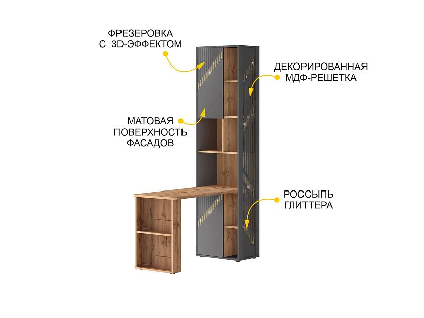 Стол-стеллаж «Монако 902 322» является частью модульной программы «Монако 902». Коллекция «Монако 902» — это образец элегантного стиля и утонченного вкуса. Сочетание матовой графитовой поверхности фасадов с благородной древесной текстурой создает особую атмосферу гармонии и комфорта.