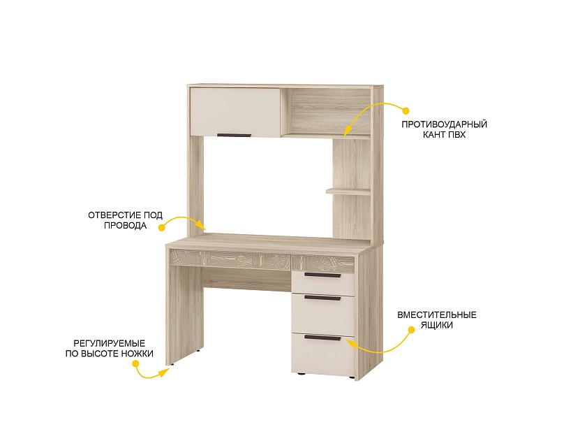 Стол с надстройкой «Кашемир 900 320» является частью модульной программы «Кашемир». Отличительные особенности этой коллекции — сочетание натуральных кашемировых оттенков с тактильно приятными фактурами древесного декора, лаконичные формы и мягкие цвета. В ее декоре нет ничего кричащего, только спокойствие и уют. Стол можно использовать как отдельный предмет мебели, так и в сочетании с другими модулями коллекции.
