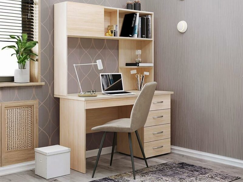 канцелярские принадлежности и документы. Стол удачно сочетается с модулями из других коллекций «DaVita-мебель» в цвете «Дуб Кобург».
