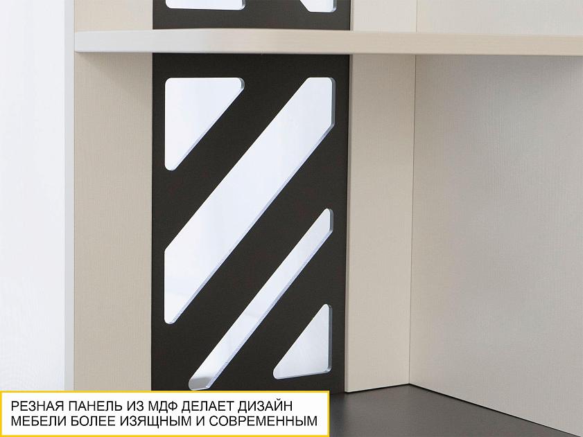 Фасад надстройки в цвете «Графит» декорирован объемным тиснением. Рельефная текстура придает дизайну мебели выразительности, создает глубину и приятные тактильные ощущения.
