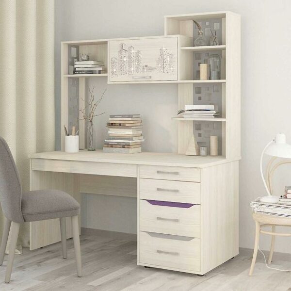 Стол с надстройкой выполнен в популярном и универсальном белом цвете, что позволяет сочетать его с любыми цветами и фактурами.