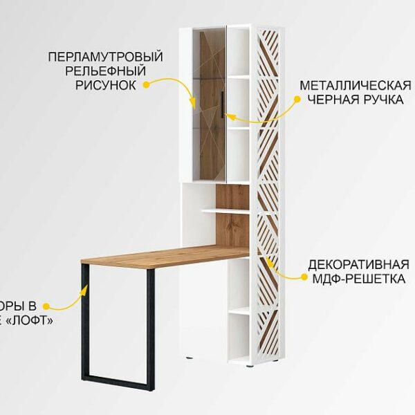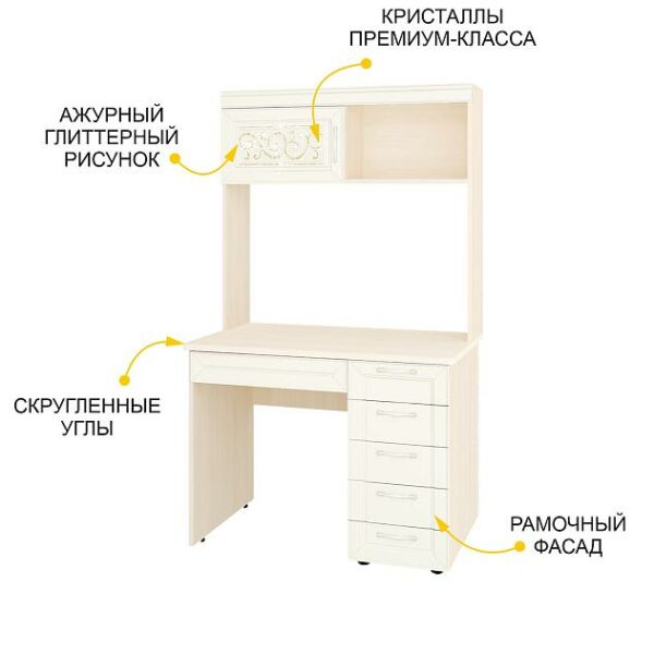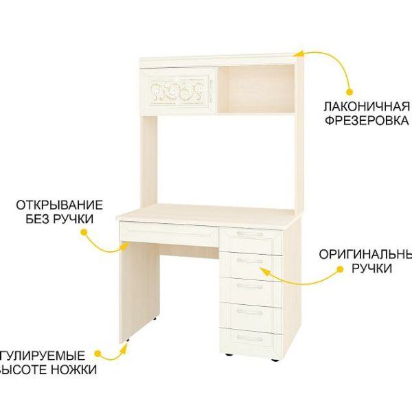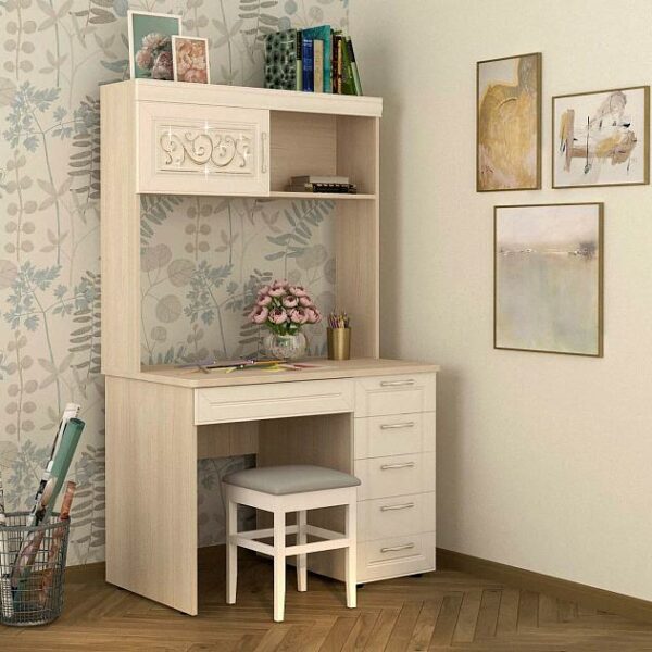 Стол с надстройкой «Николь 901 321» — это сочетание безупречного дизайна и неповторимой атмосферы комфорта. Белоснежный цвет и матовую поверхность фасадов дополняют лаконичный 3D-рисунок и фрезеровка.
