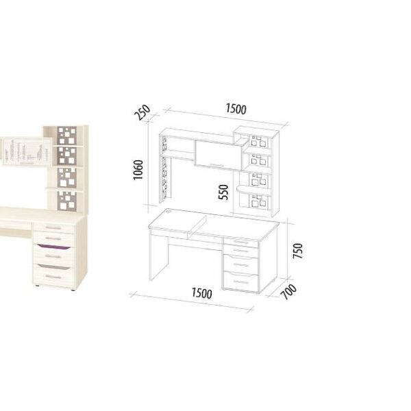 Стол с надстройкой (лев/прав) Николь 901 321