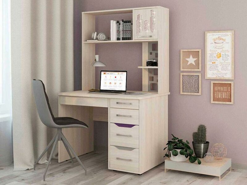 Компьютерный стол «Мегаполис 55.26.1» является частью модульной программы «Мегаполис». Просторная поверхность стола позволяет удобно разместить как компьютерное оборудование, так и канцелярские принадлежности. Под столешницей расположен выдвижной ящик для хранения мелочей. В тумбе в правой части стола установлены четыре выдвижных полновыкатных ящика. Шариковые направляющие обеспечивают плавный бесшумный ход и длительный срок эксплуатации изделия. Надстройка стола заменяет навесную полку и позволяет компактно хранить большое количество необходимых рядом с рабочей зоной предметов. Компьютерный стол можно использовать не только в сочетании с другими модулями подростковой, но и как отдельный предмет мебели.