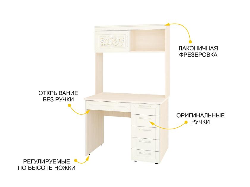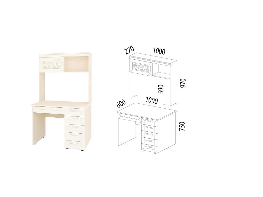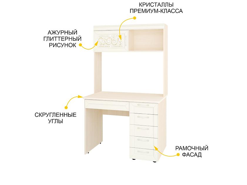 Стол с надстройкой «Тиффани 93 321» является частью модульной программы «Тиффани». Коллекция «Тиффани» — символ классического стиля и незабываемого шарма. Нежные светлые фасады и изысканность декора — отличительная черта коллекции. Ажурные декоративные элементы и кристаллы придают уникальность коллекции.