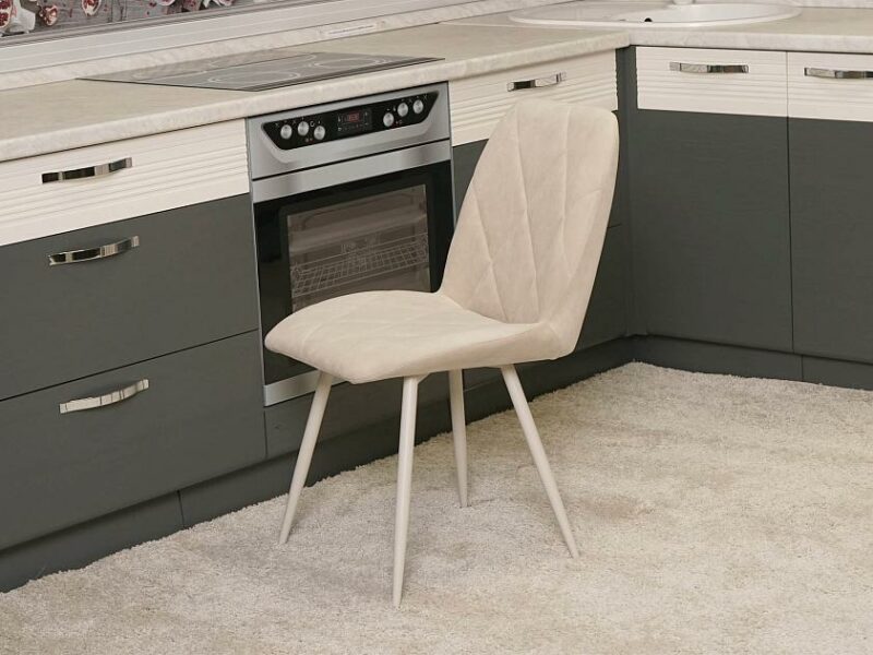 Элегантные металлические ножки матового бежевого цвета роскошно смотрятся и придают изделию утонченность. Такой стул станет идеальным компаньоном обеденному столу в светлом цвете.
