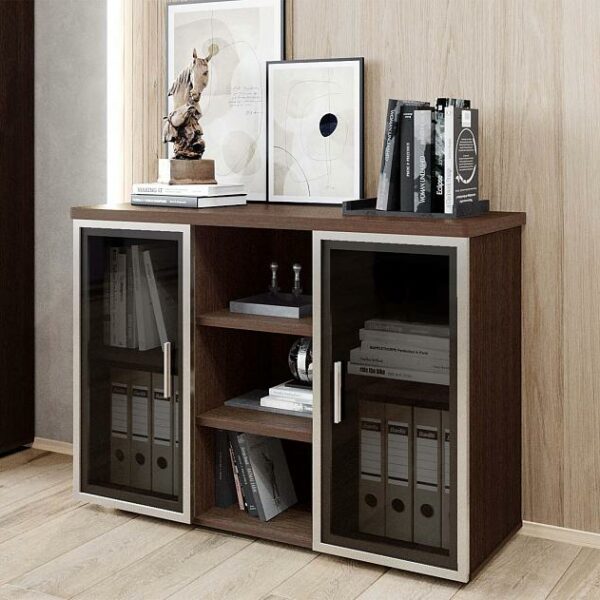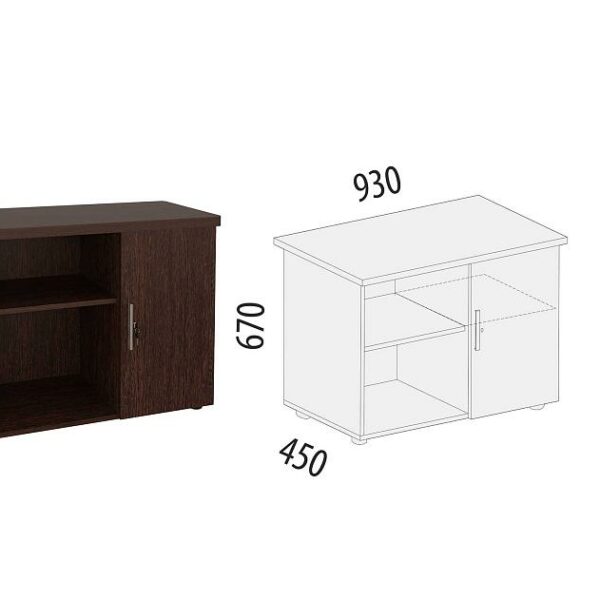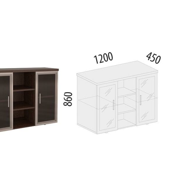 Тумба состоит из двух выдвижных ящиков, закрытых полок и ниш для аудио- и видеоаппаратуры.