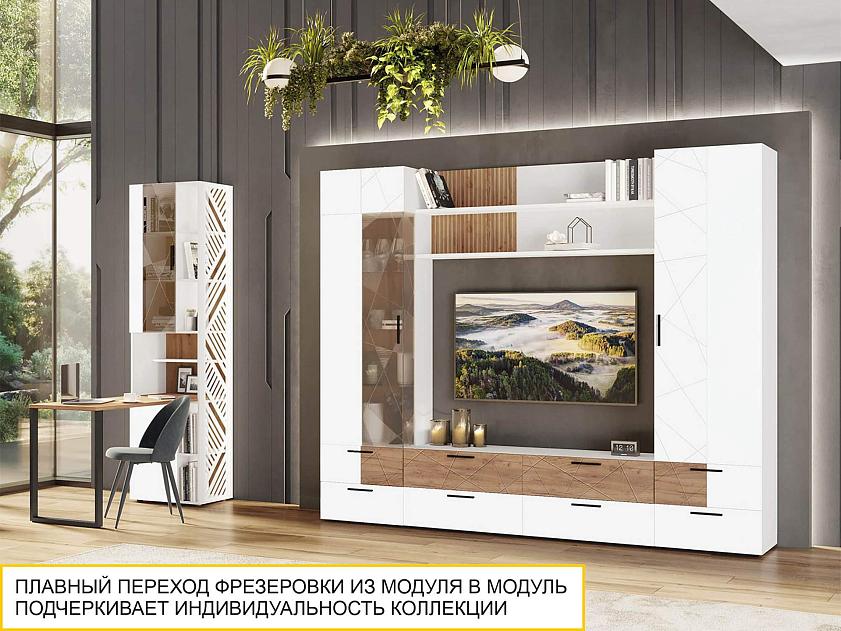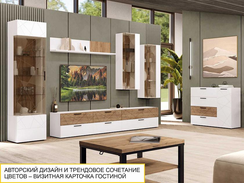 Модуль декорирован стильной фрезеровкой и объемным 3D-рисунком с патиной на фасаде, что добавляет мебели эксклюзивности и выразительности.