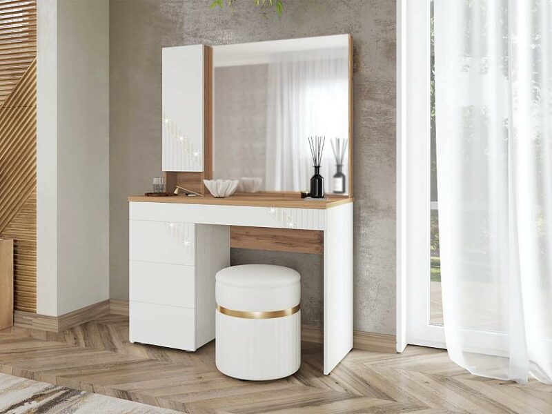 Туалетный столик «Монако 903.06» является частью модульной программы «Монако 903». Коллекция «Монако» — это образец элегантного стиля и утонченного вкуса. Сочетание матовой белоснежной поверхности фасадов с благородной древесной текстурой подчеркивает изысканный дизайн коллекции.