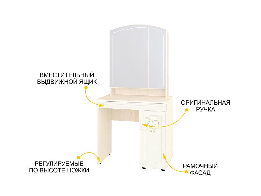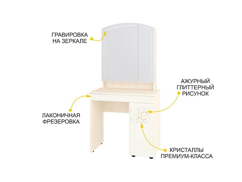 Туалетный столик «Тиффани 93.30» является частью модульной программы «Тиффани». Коллекция «Тиффани» — символ классического стиля и незабываемого шарма. Нежные светлые фасады и изысканность декора — отличительная черта коллекции. Ажурные декоративные элементы и кристаллы придают уникальность коллекции.