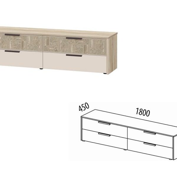 Модуль декорирован стильной фрезеровкой и объемным 3D-рисунком с патиной на фасаде, что добавляет мебели эксклюзивности и выразительности.