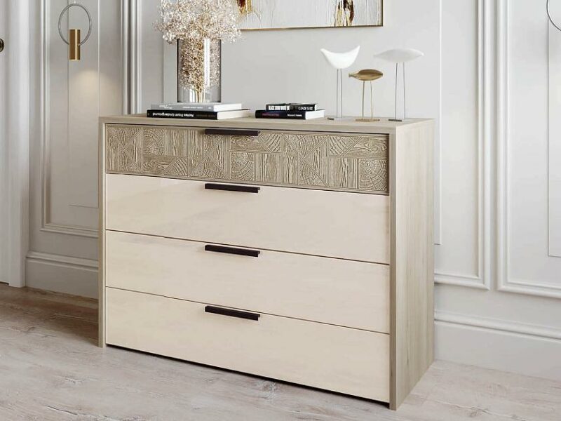 Комод «Кашемир 900.23» является частью модульной программы «Кашемир». Отличительные особенности этой коллекции — сочетание натуральных кашемировых оттенков с тактильно приятными фактурами древесного декора, лаконичные формы и мягкие цвета. В ее декоре нет ничего кричащего, только спокойствие и уют. Комод можно использовать как отдельный предмет мебели, так и в сочетании с другими модулями коллекции.