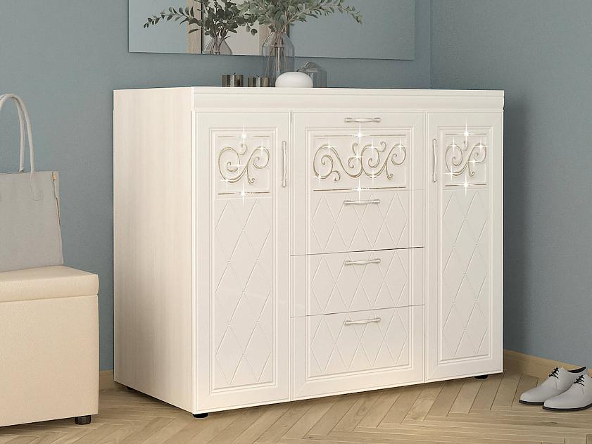 Комод «Тиффани 93.20» является частью модульной программы «Тиффани». Коллекция «Тиффани» — символ классического стиля и незабываемого шарма. Нежные светлые фасады и изысканность декора — отличительная черта коллекции. Ажурные декоративные элементы и кристаллы придают уникальность коллекции.