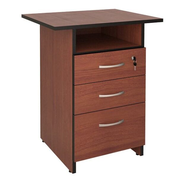 «Альфа 62 565» – набор мебели для офиса, который состоит из комфортного стола с приставной тумбой для хранения офисных принадлежностей, подставки под системный блок и приставки.