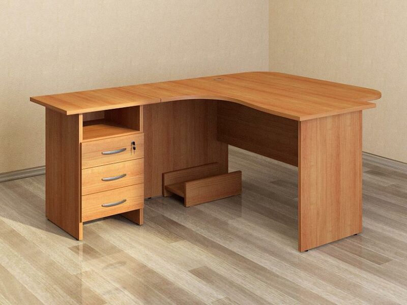 «Альфа 61 567» – набор мебели для офиса, который состоит из комфортного стола с приставной тумбой для хранения офисных принадлежностей, подставки под системный блок и приставки.