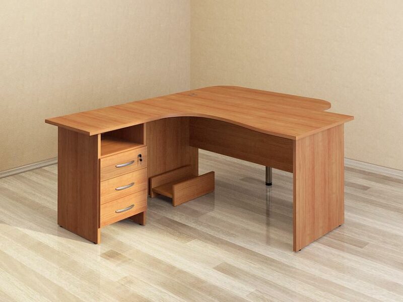 «Альфа 61 568» – набор мебели для офиса, который состоит из комфортного стола с приставной тумбой для хранения офисных принадлежностей, подставки под системный блок и приставки.