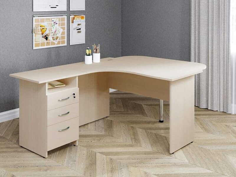«Рубин 40 568» – набор мебели для офиса, который состоит из комфортного стола с приставкой и приставной тумбы для хранения офисных принадлежностей.