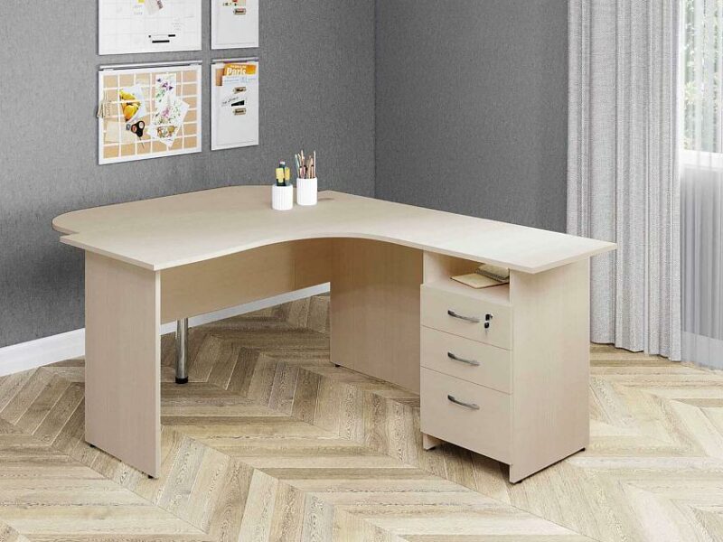 «Рубин 40 567» – набор мебели для офиса, который состоит из комфортного стола с приставкой и приставной тумбы для хранения офисных принадлежностей.