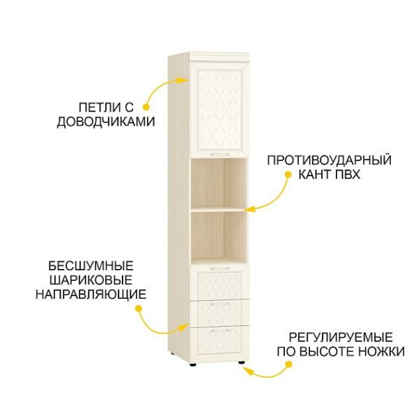 Дверцы оснащены петлями с доводчиками, которые обеспечивают плавное и бесшумное закрывание.