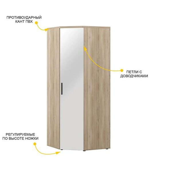 Угловой шкаф «Соната 60» – это образец функциональности и стиля. Большое количество полок в сочетании со штангами для одежды позволит организовать продуманную систему хранения вещей.
