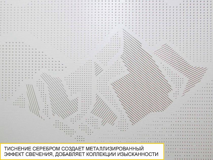 Тиснение серебром создает металлизированный эффект свечения, придает изысканность и оригинальность коллекции.