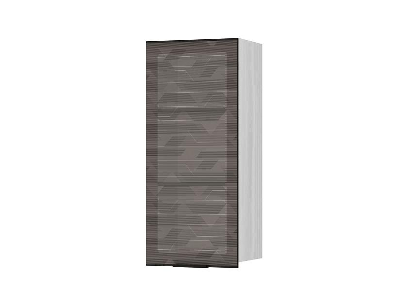 Геометрический рисунок на стекле поддерживает общую концепцию изделия, придает кухне современный внешний вид.