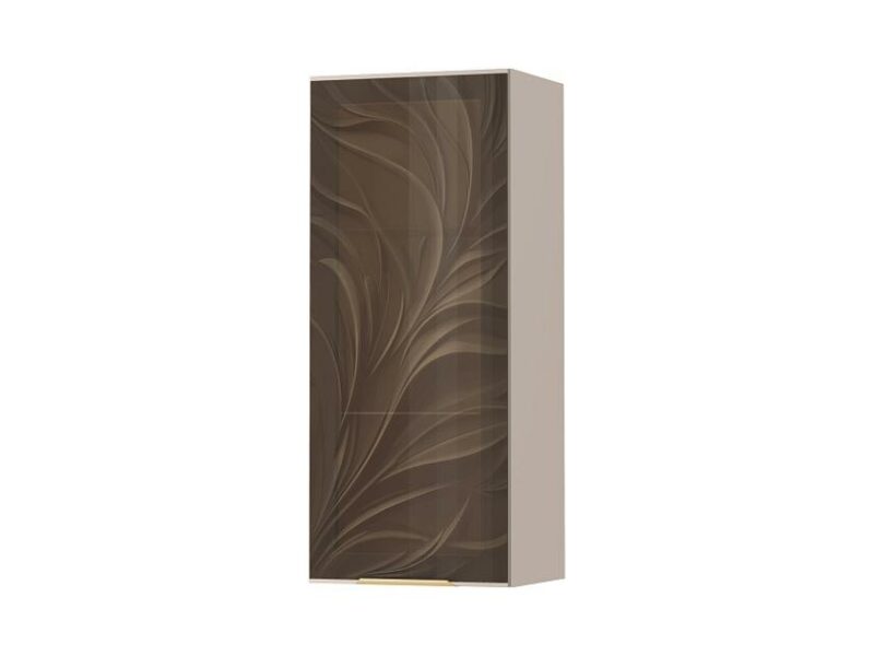 Эффект «бронзированного» стекла гармонирует с нежно-бежевым оттенком шкафа, создавая теплую и уютную атмосферу.