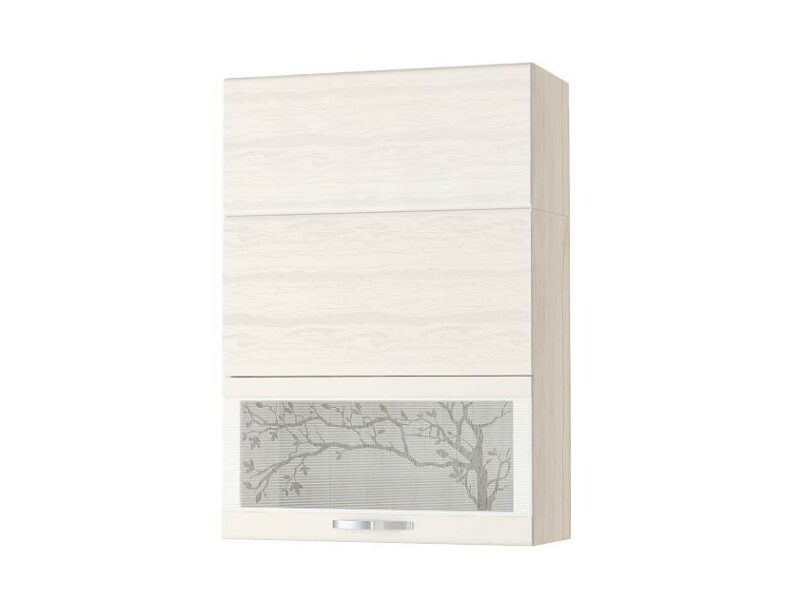 Фасад с рисунком на стекле придает кухне изысканный внешний вид. 3D-эффект на фасадах, имитирующий текстуру коры дерева, подчеркивает оригинальный дизайн. Дверцы шкафа оснащены подъемными механизмами с системой Blum, которые обеспечивают плавное открывание и закрывание дверец и возможность удержать их в любом положении. Дверца верхнего отделения шкафа оснащена системой Push-to-Open — открывание и закрывание дверцы происходит без мебельных ручек с помощью легкого нажатия.