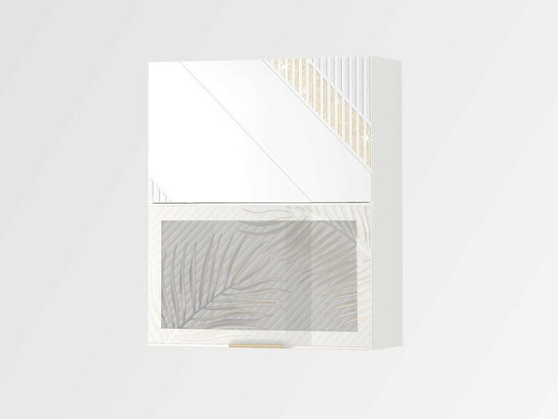 Деликатное мерцание «золота» добавляет мягкое сияние. Чистота осветлённого стекла Crystal подчёркивает сложность рисунка, превращая витрину в элегантный акцент кухни.